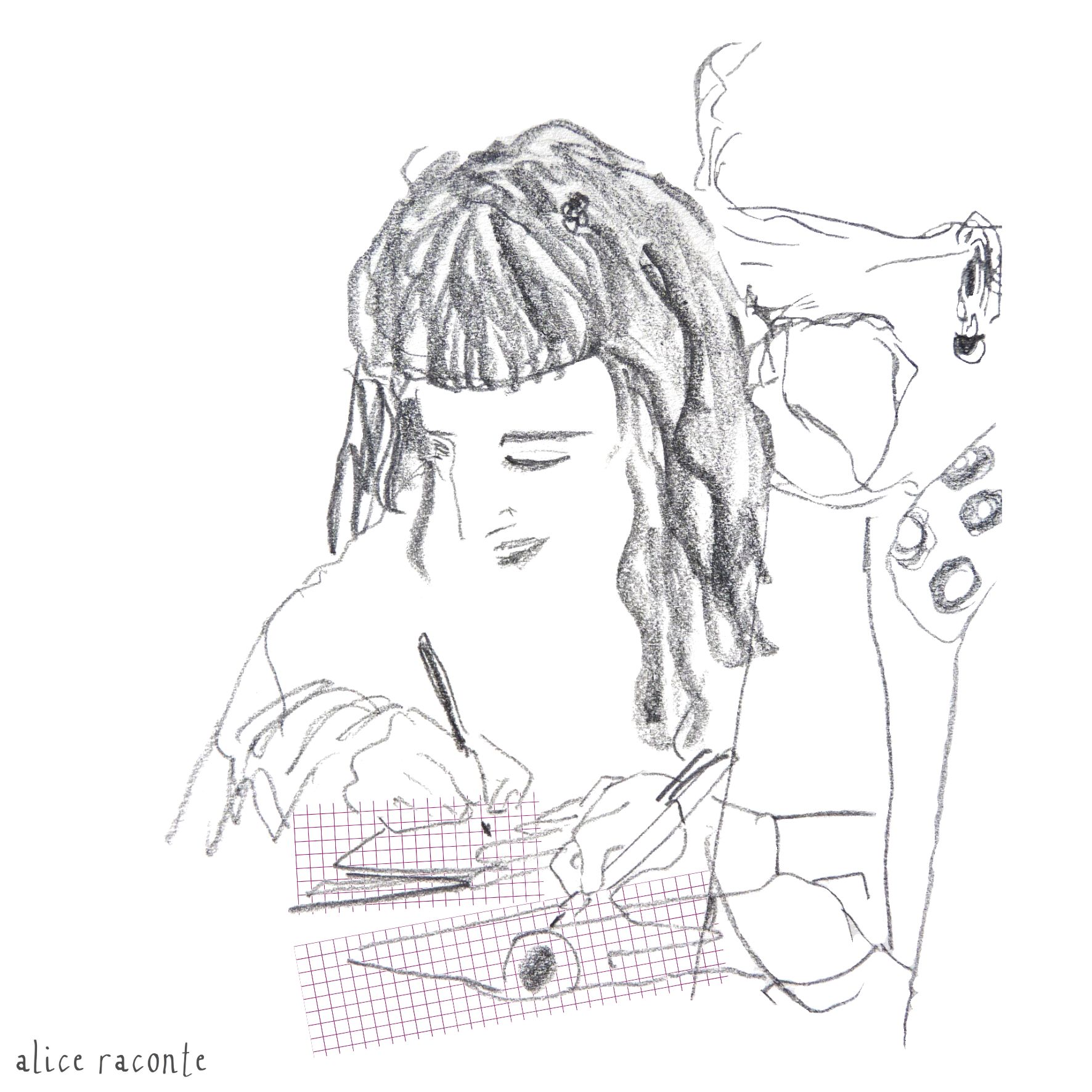 Depuis 2022, Louise Bataillon et Ariane Salignat, de la Cie du Dernier étage à Grenoble, réunissent des habitantes lors d’ateliers d’écriture féministe mensuels. Les participantes, les Femmes truc, viennent d’horizons divers et sont invitées, via des jeux d’écriture, à partager ressentis et vécus quant à nos conditions féminines. Des autrices sont régulièrement conviées à animer un atelier, à l’instar d’Anooradha Rughoonundun en 2023 ou de Diaty Diallo en 2024. Après Coralie Simmet en 2023, c’est moi qui ai été invitée à croquer les mines concentrées, les sourires encourageants et les mots (doux, d’esprit – et aussi tous les autres) !