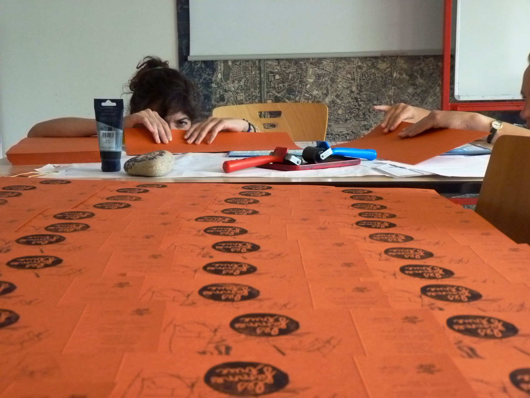 Prise de notes et de croquis sur le vif – Création d’une édition papier illustrée, reliée à la main : conception de la maquette, suivi de fabrication avec l’imprimeur, animation d’un temps collectif de façonnage et reliure.